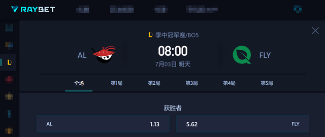 不过AL毕竟是这次MSI被十分看好的夺冠热门之一,哪怕是GEN教练都多次在采访中公开表示,他们在和AL的训练赛中被压制。作为一支兼顾运营和进攻的队伍,AL的身上同时有着LCK和LPL两大赛区的特点,他们的纸面实力要比FLY更强的情况下,只要不太过轻敌应该很难被对手爆冷。从赛前专业电竞预测平台给出的数据来看,AL在本场比赛是以1.13占据上风,这场比赛他们无疑是稳操胜券的一方。