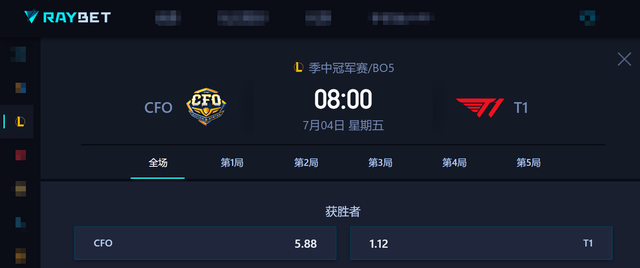 作为一场BO5赛制下的对决,注定了这更加有利于强队提升容错率,也意味着弱队更难出现爆冷。虽然CFO创造过BO3零封TES的名场面,但是面对大赛表现更加稳定的T1,实力的巨大差距让这场比赛难以有太大悬念。从赛前专业电竞预测平台给出的数据来看,身为卫冕冠军的T1以1.12力压本场对手CFO。